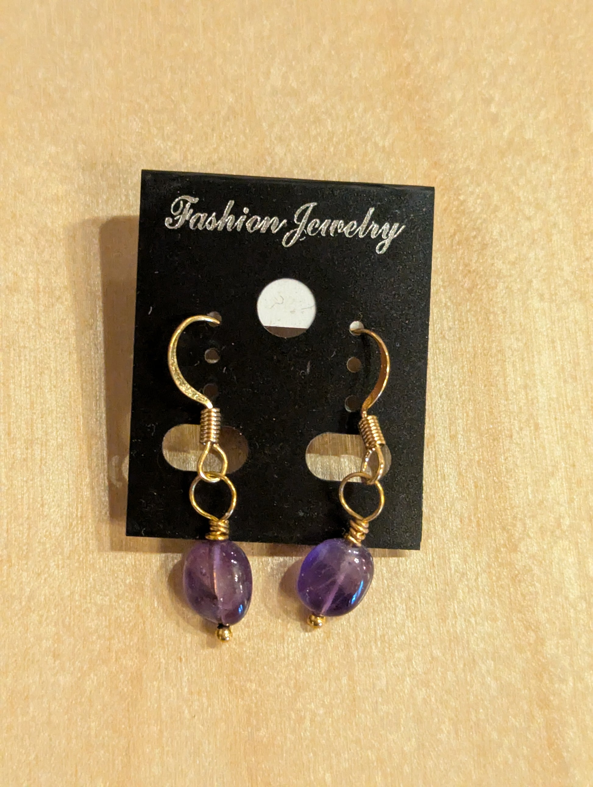 Hand made drop earrings with hooks. Refined oval amethyst beads in understated gold findings, sure to create refined statements wherever you go.