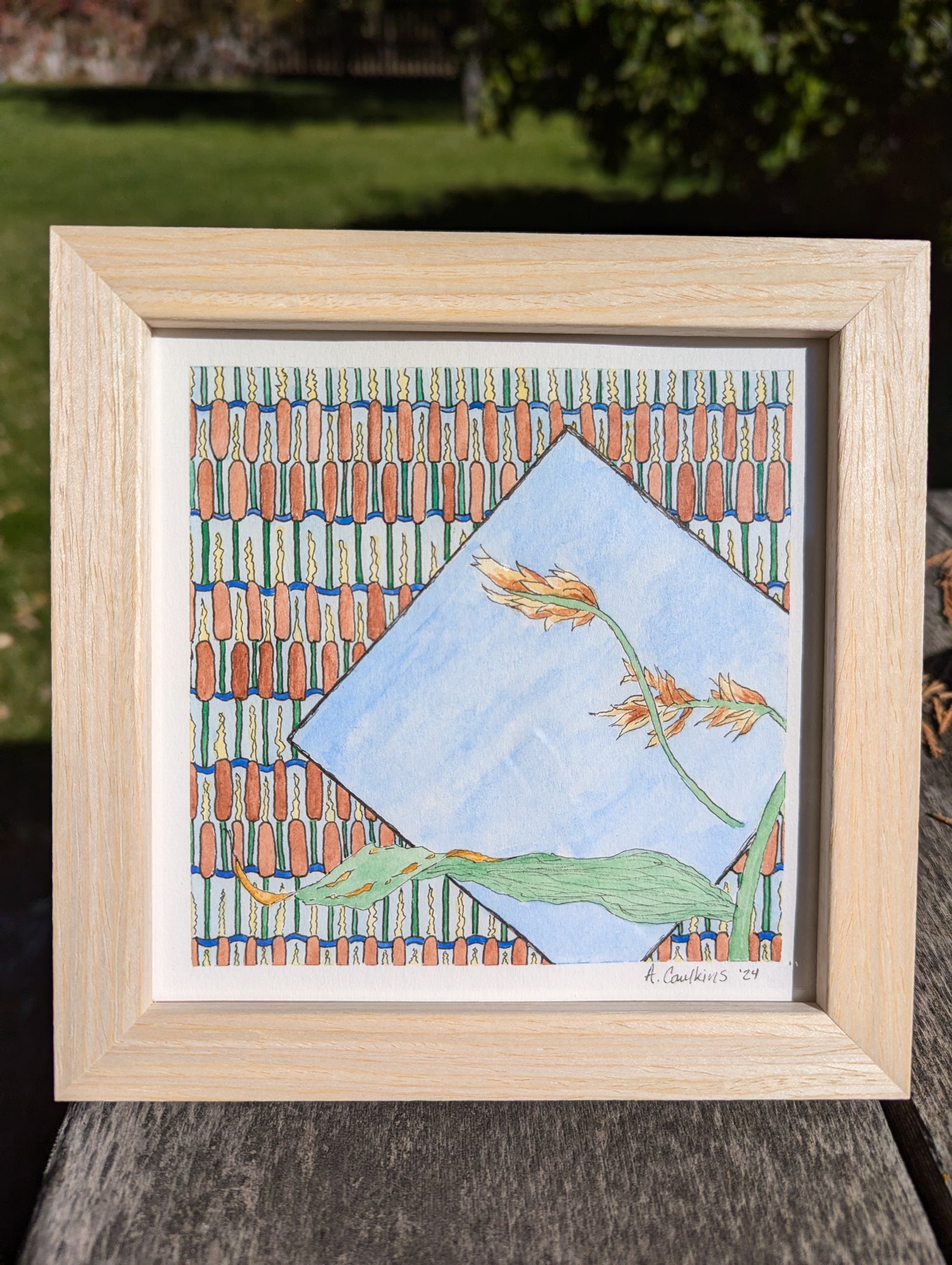 Ochoco is a limited edition print of an original gouache painting depicting two plants often seen in the Ochoco region of Central Oregon: the spike bentgrass and cattails.