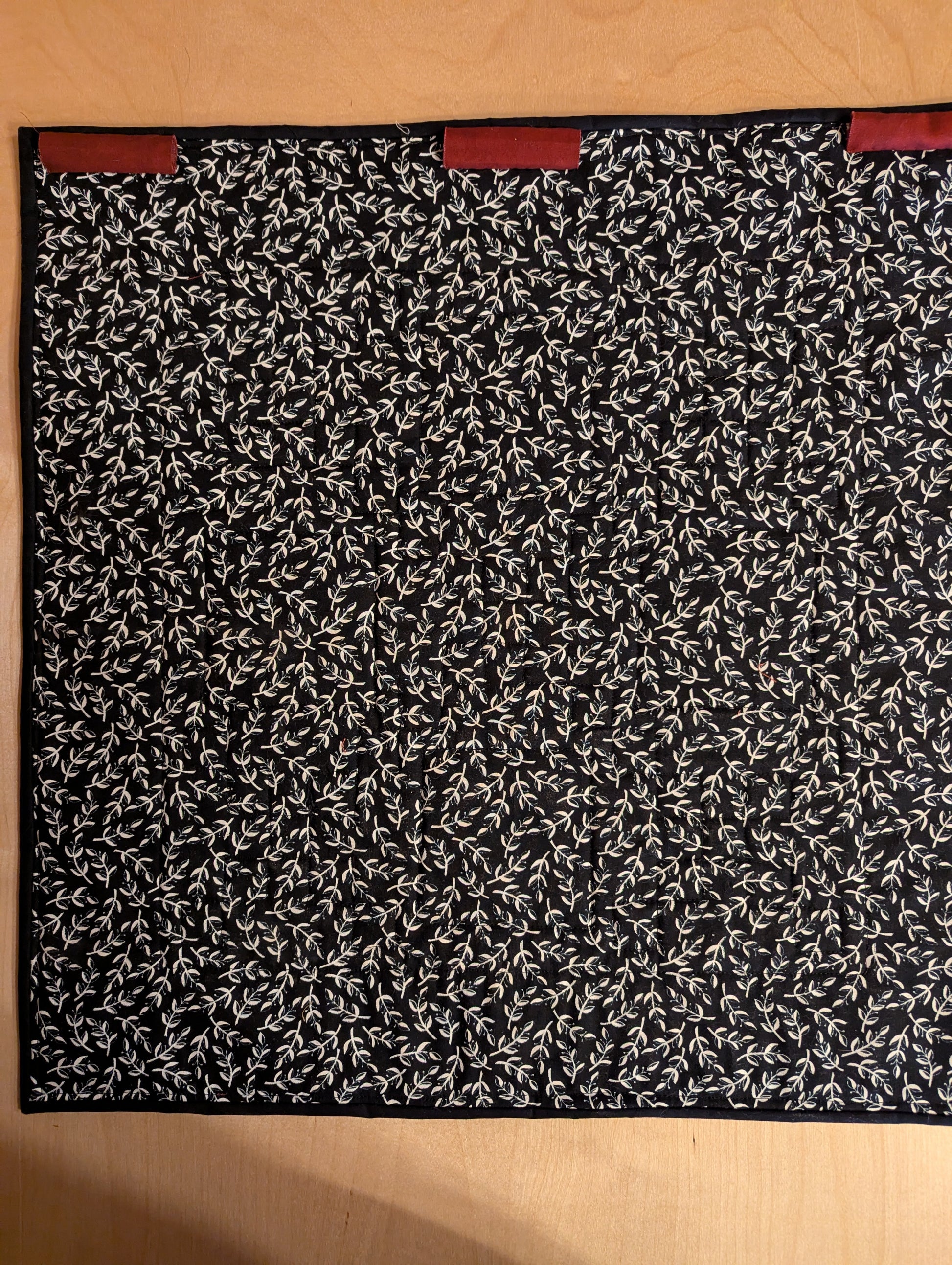 Handmade quilted wall hanging featuring hand appliqued bouquets in spool of thread vases.