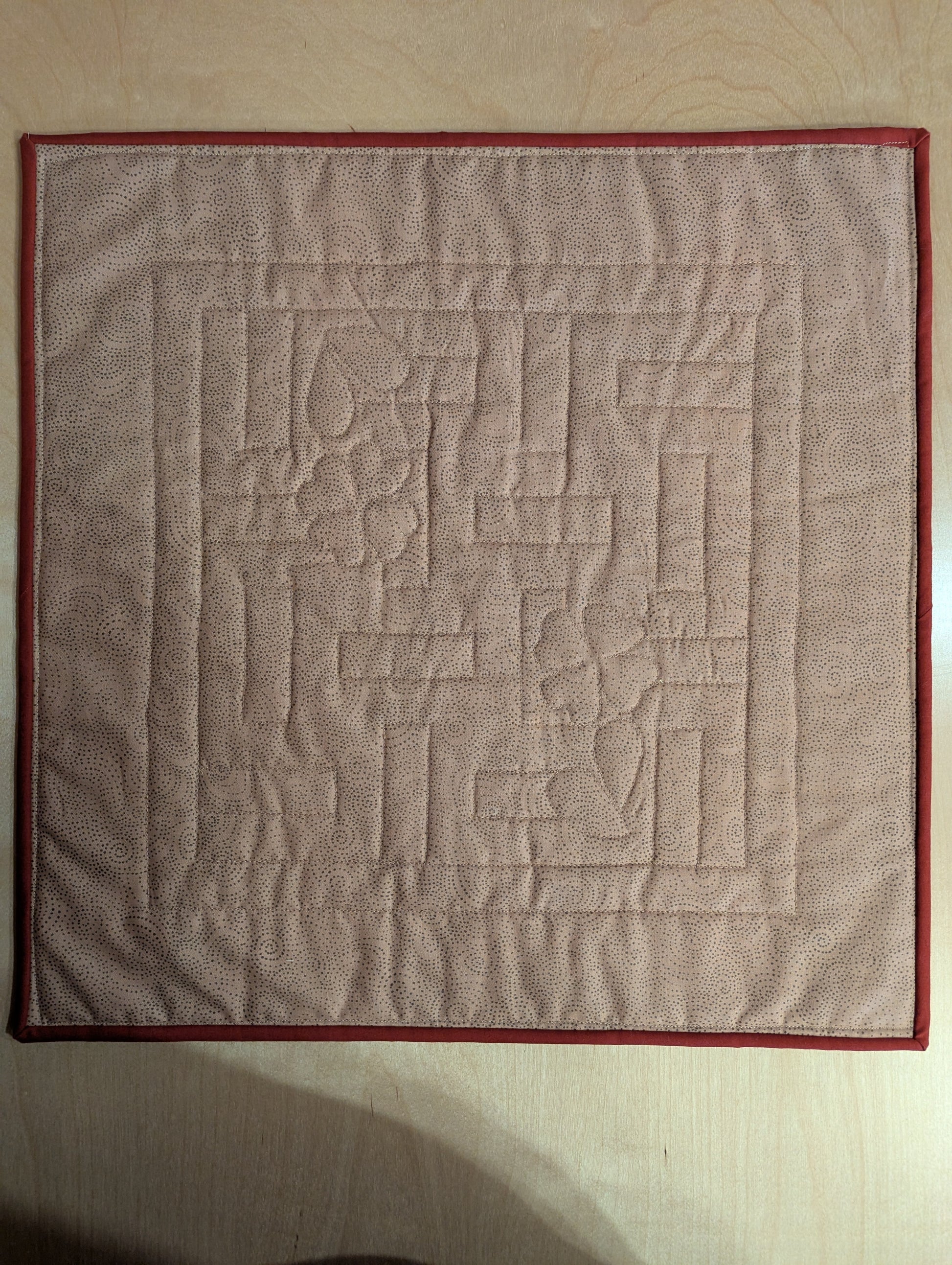 Handmade quilted wall hanging featuring hand appliqued felt flowers.